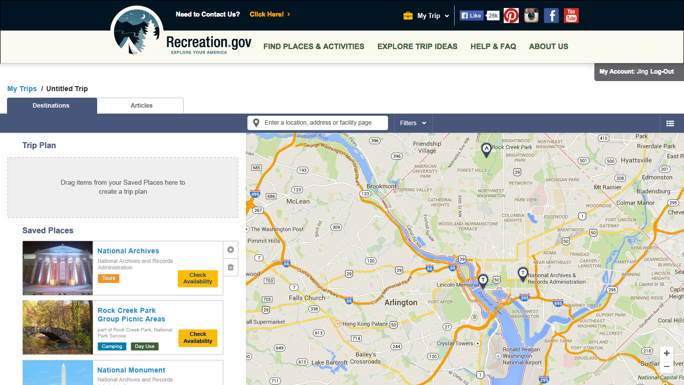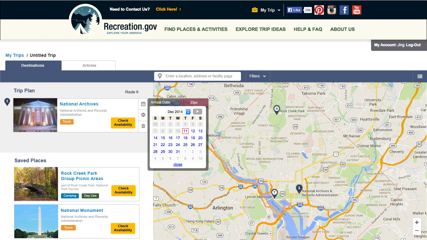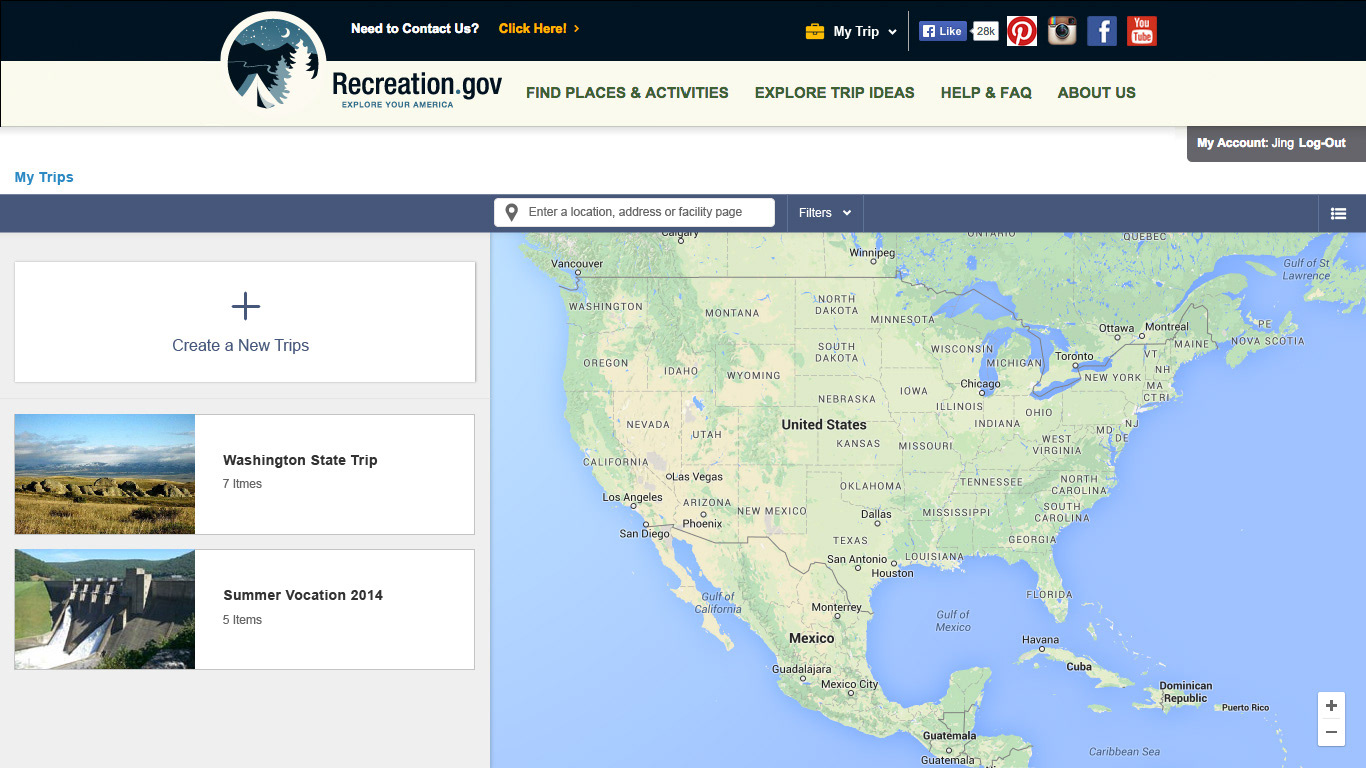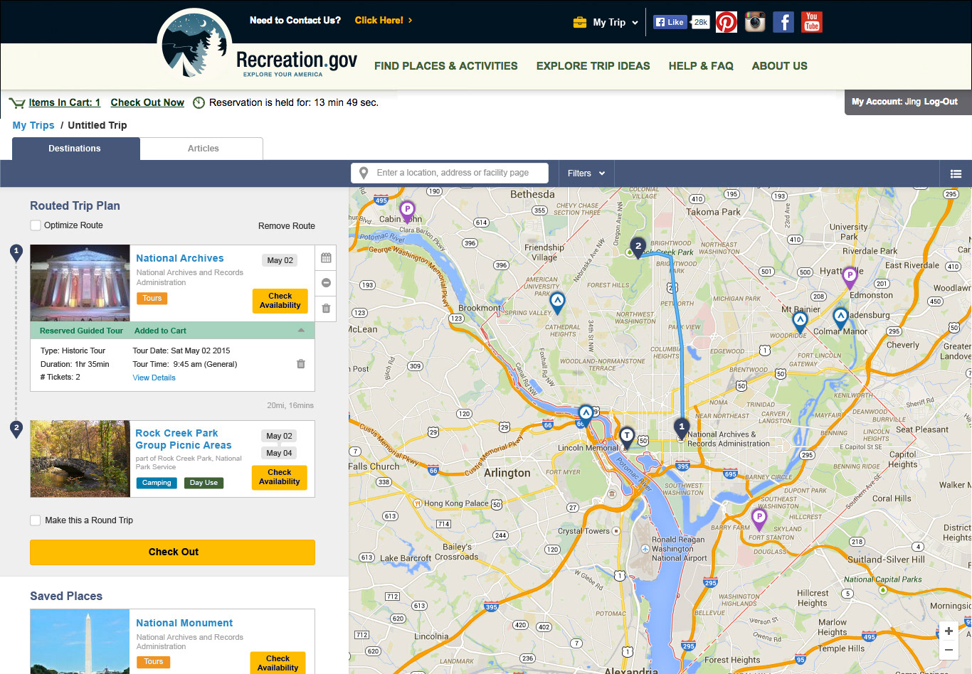 In 2014, to engage users and stimulate the trip planning and booking market, Recreation.gov decided to develop a trip planning tool called My Trips. It is a tool that travelers can plan the route of their trip on the map, as well as book national parks itineraries.